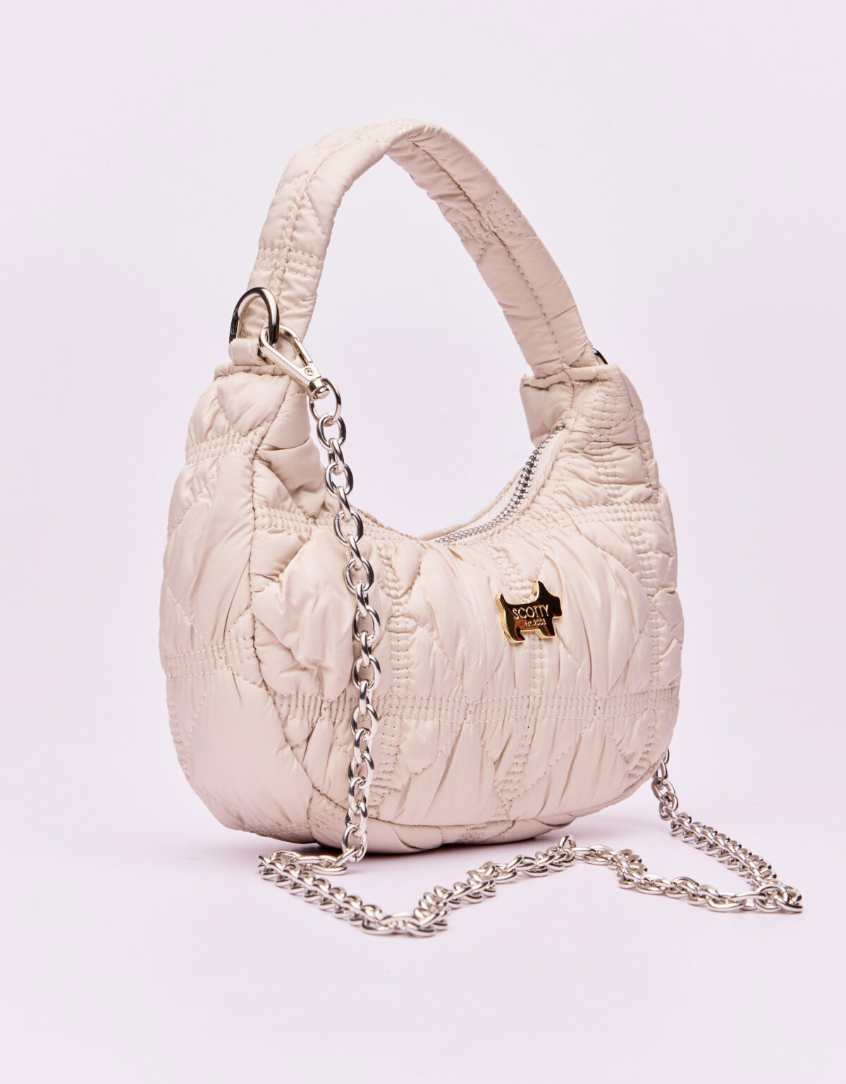The Buhle Bowler Bag is a modern take on a timeless silhouette. Crafted from soft quilted material, the bag’s elegant structure is beautifully complemented by its plush finish, giving it a refined yet fashionable look. Top-quality silver hardware adds a sleek touch, while the large top-opening zipper reveals a generously sized interior, perfect for carrying your daily essentials with ease. Designed for versatility, this bag can be worn as a chic over-the-wrist bowler clutch or attach the long silver chain strap to transform it into a stylish crossbody for effortless, hands-free wear. Perfect for day or evening, this bowler bag brings both function and fashion together.