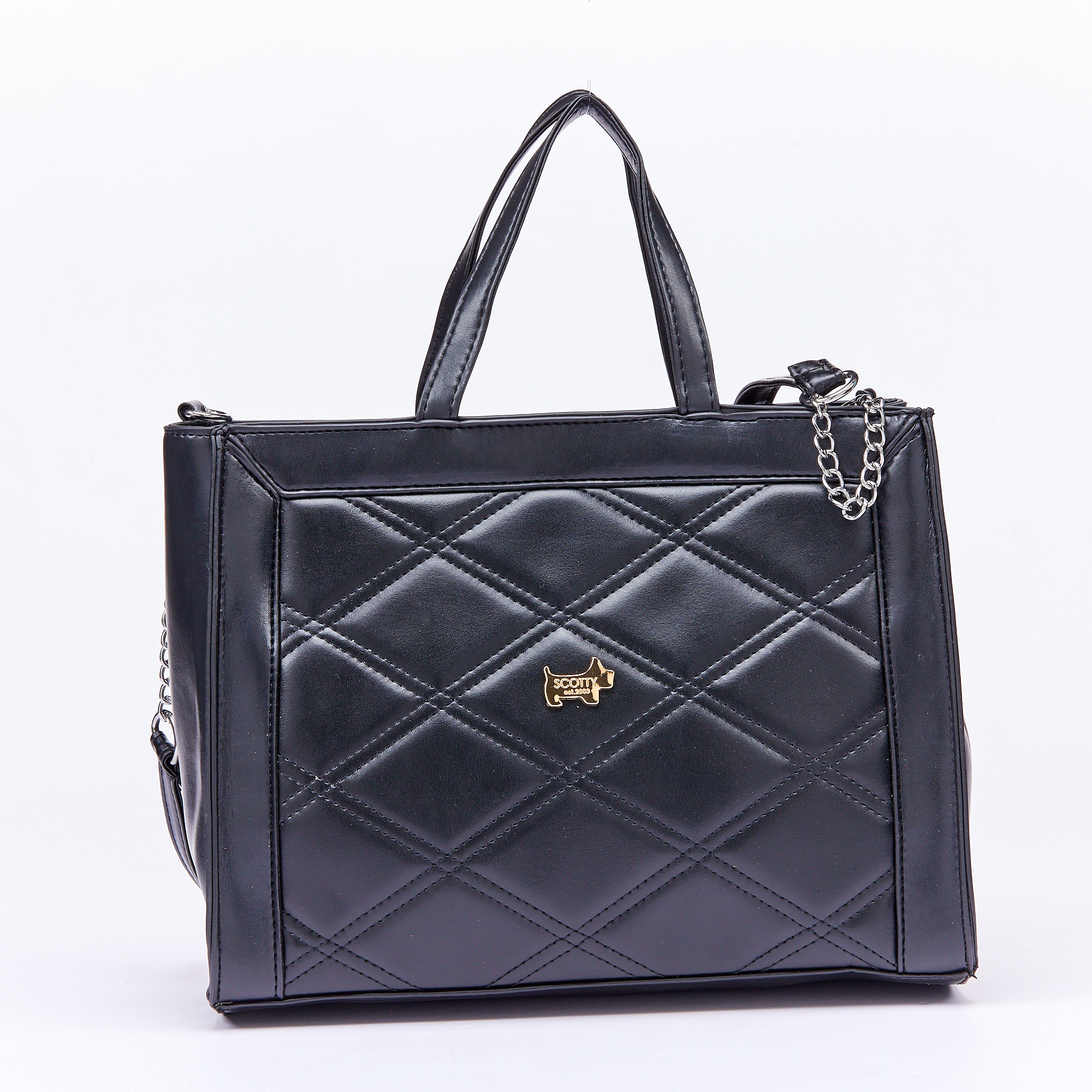 This chic classic bowler satchel and crossbody handbag boasts a structured silhouette, spacious interior with internal zippers, and a long adjustable strap for added versatility. The quilted front adds extra class and elegance.