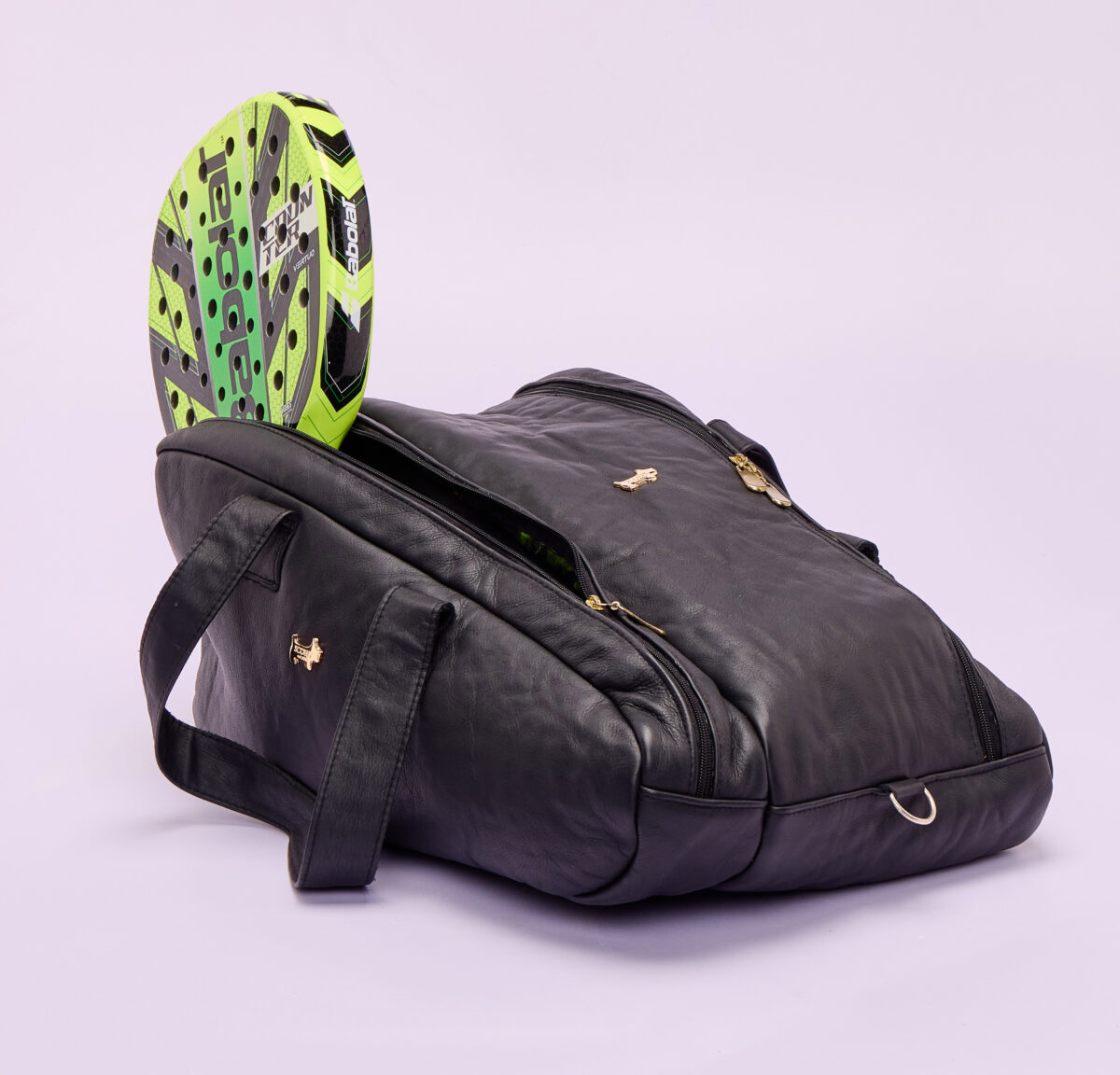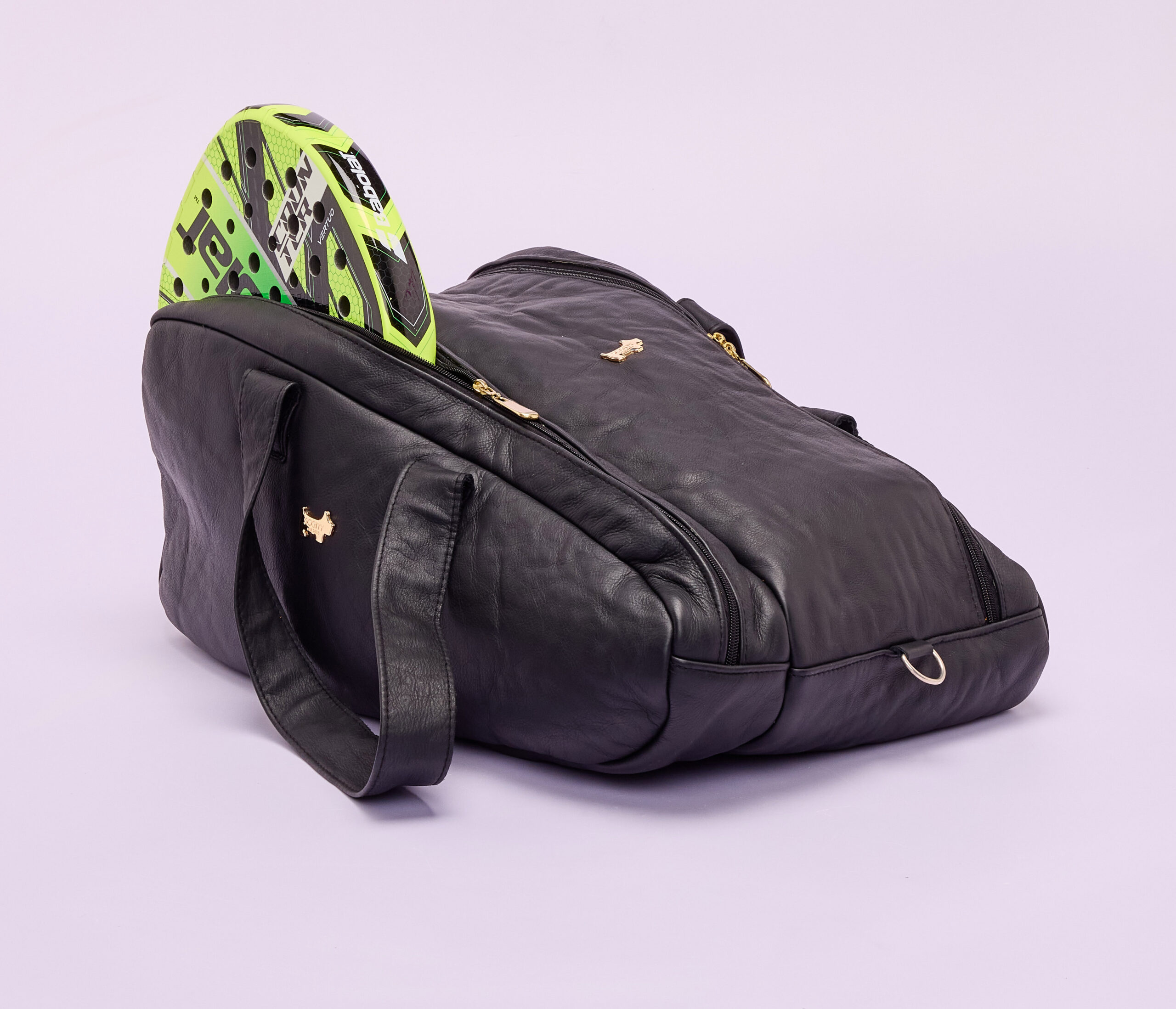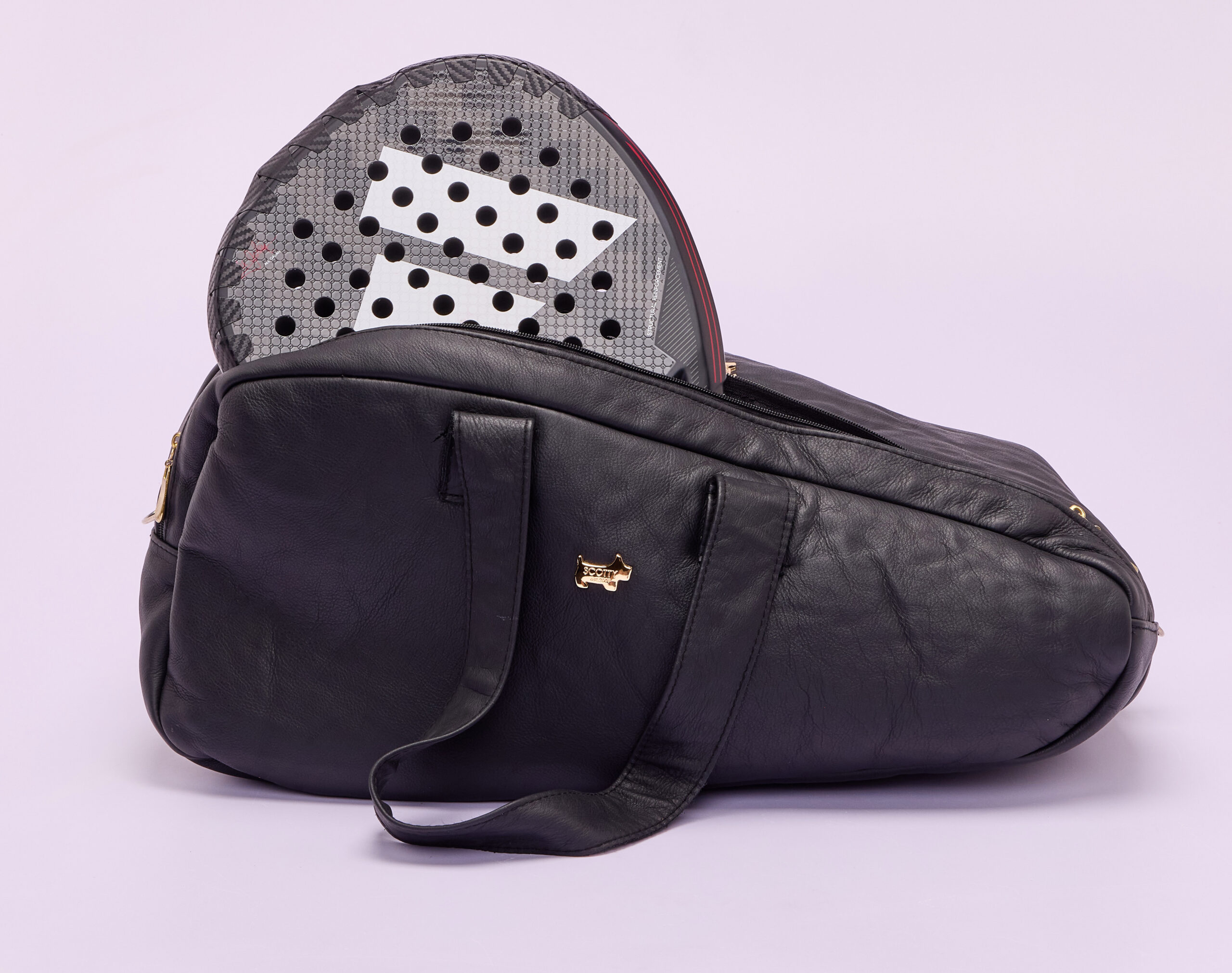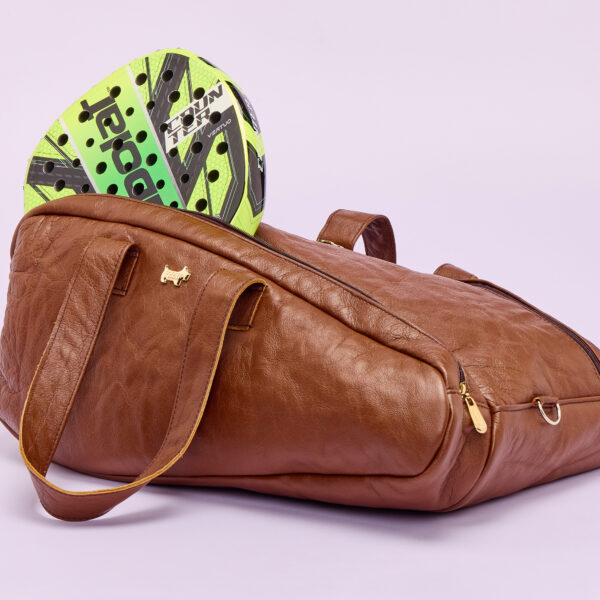 The Scotty Padel bag is a sophisticated leather padel bag crafted from top-quality soft leather that develops a beautiful patina over time. It features a padded compartment that securely fits two padel rackets, complemented by premium gold hardware for an elegant finish. The spacious interior offers room for a change of clothes, towels, and all essential sports items. Stylish, functional, and refined—perfect for making a statement on the padel courts.