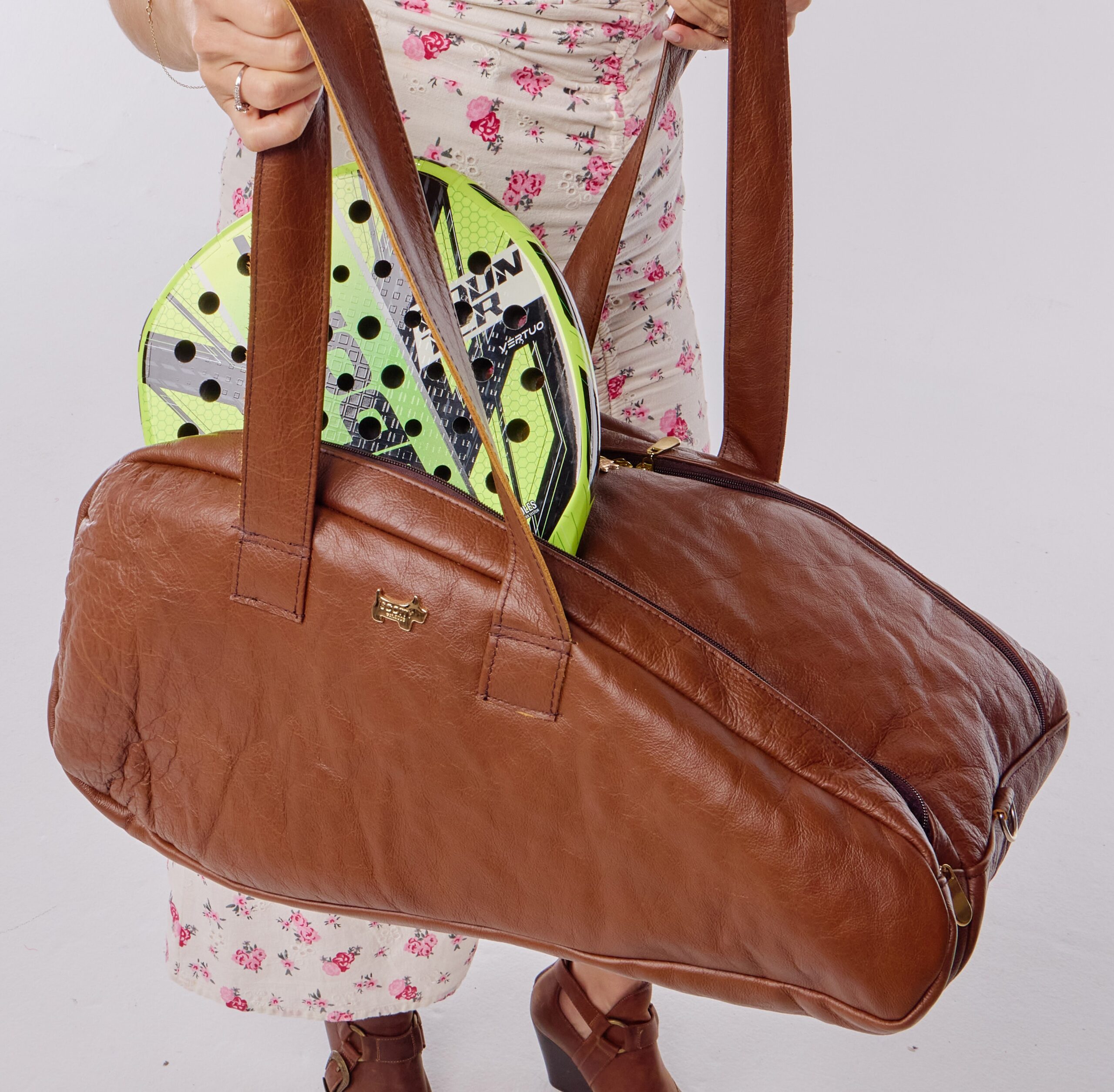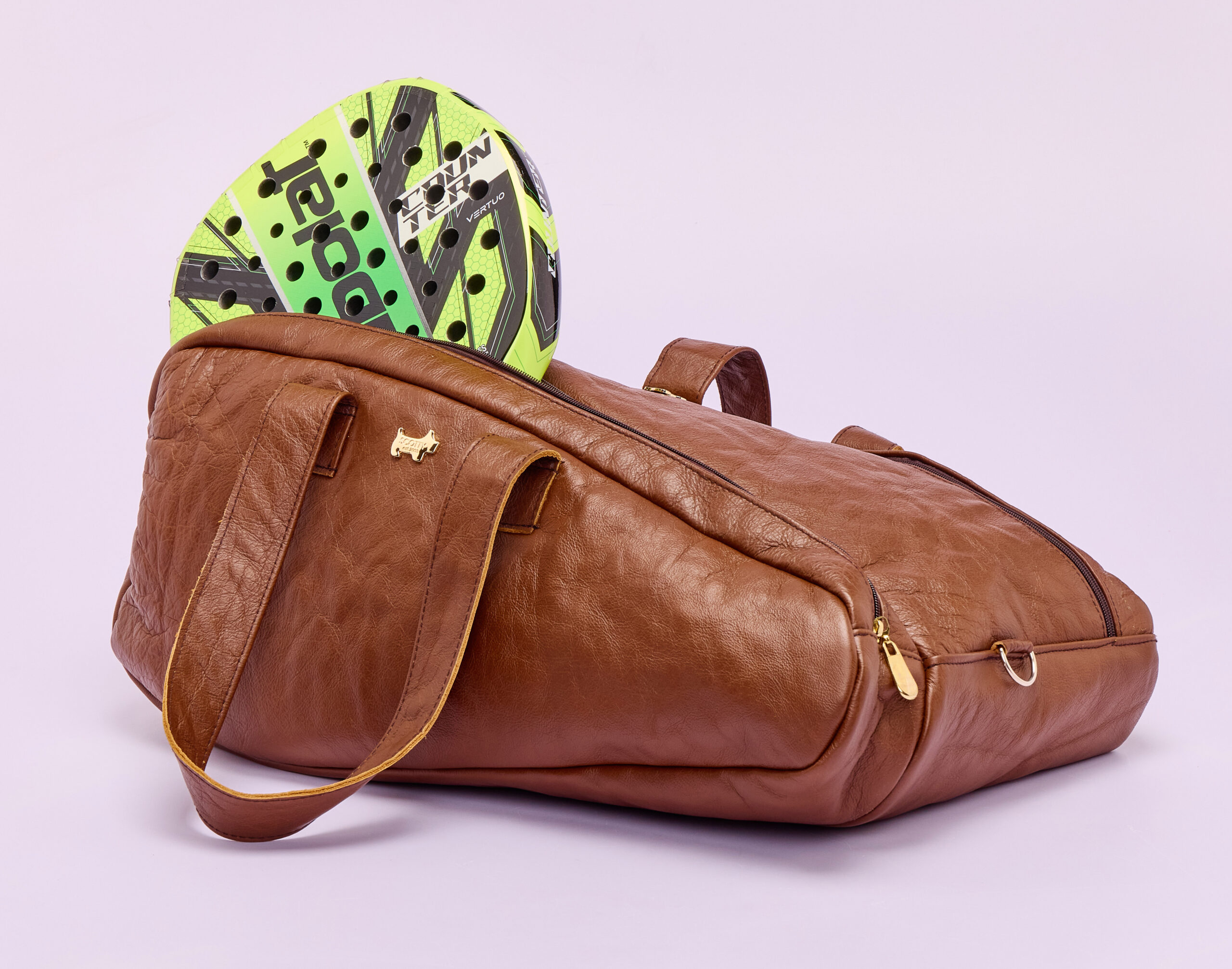 The Scotty Padel bag is a sophisticated leather padel bag crafted from top-quality soft leather that develops a beautiful patina over time. It features a padded compartment that securely fits two padel rackets, complemented by premium gold hardware for an elegant finish. The spacious interior offers room for a change of clothes, towels, and all essential sports items. Stylish, functional, and refined—perfect for making a statement on the padel courts.