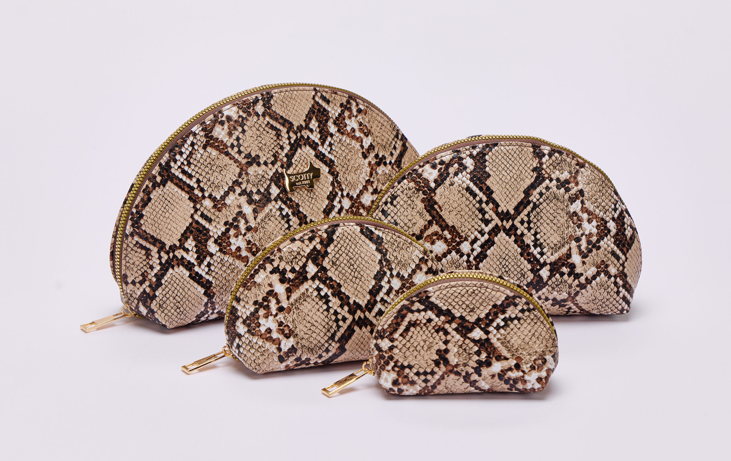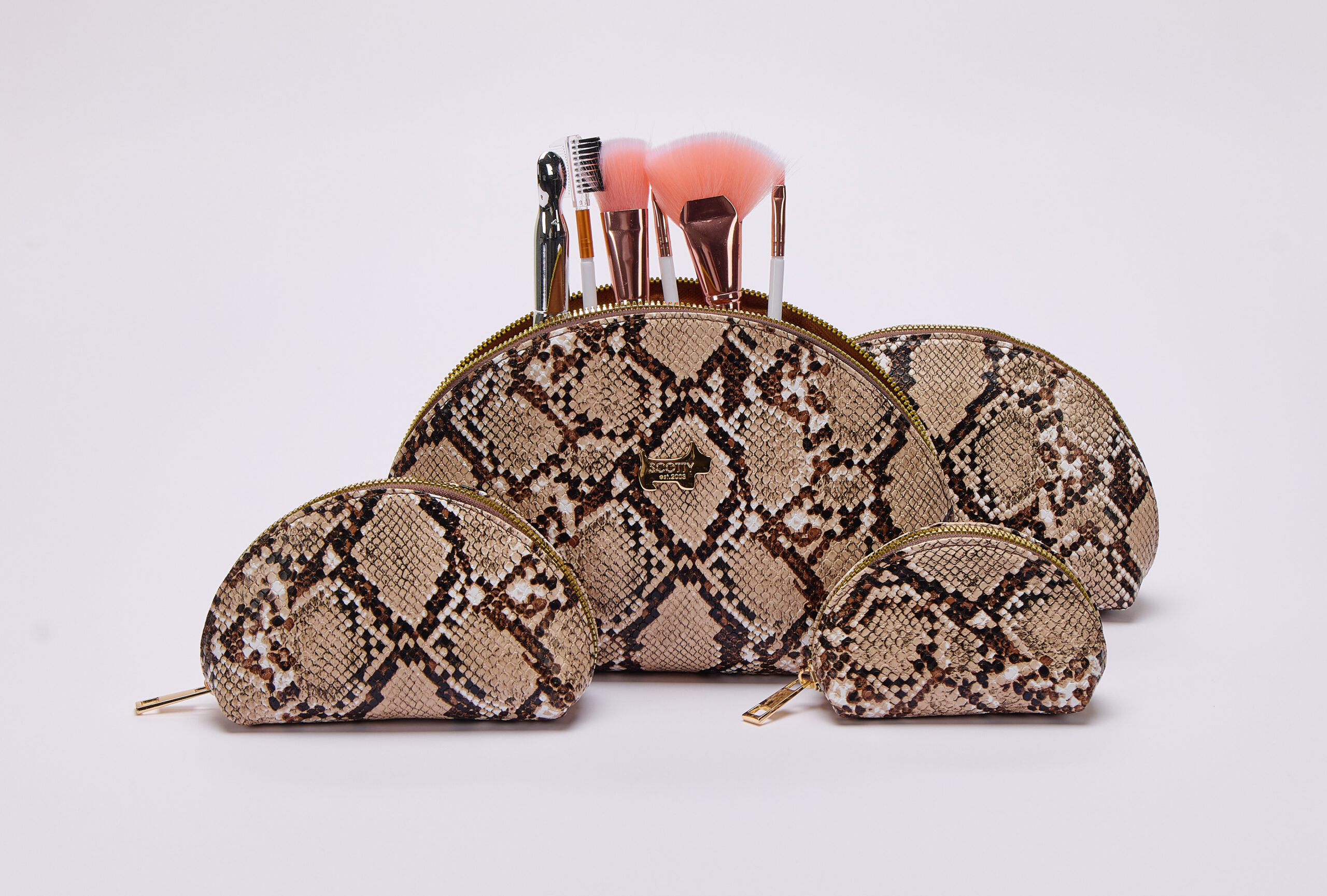 The Slick cosmetic bag set, ranging from large to small, offers stylish and durable storage for beauty essentials. Made from high-quality, easy-to-clean materials, each pouch features a smooth, top-quality zipper for secure closure. The large pouch fits full-sized products, while the smaller ones keep lipsticks, compacts, and accessories organized. Perfect for travel or daily use.